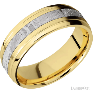 18K Yellow Gold with Satin , Polish Finish and Meteorite Inlay - 7MM