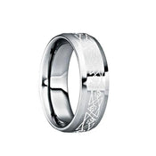 HILARIUS Tungsten Wedding Ring with Brushed Celtic Center & Polished Edges - 8mm
