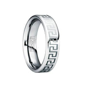 FULVIUS Tungsten Wedding Ring with Engraved Greek Key Motif & Polished Finish - 8mm