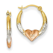 14K Tri-Colored Gold 3mm Madi K Heart Hoop Earrings