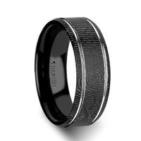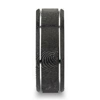 Fingerprint Engraved Flat Black Tungsten Ring with Brushed Finish & Polished Grooves - Nocturne - 6mm - 8mm