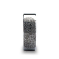 Fingerprint Engraved Flat Pipe Cut Tungsten Brushed Ring - Mercury - 4mm - 12mm