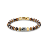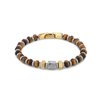 Hexagonal Tiger Eye Stone and Damascus Steel Bead Bracelet With Stainless Steel - 9 Inch