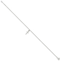 Sterling Silver 10 in Solid Polished Cross on Box Chain Anklet