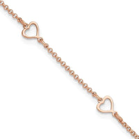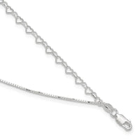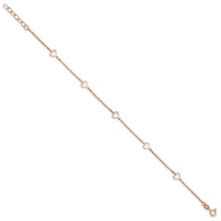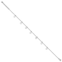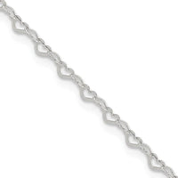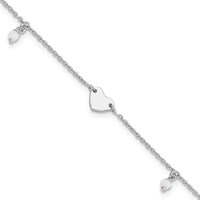 Sterling Silver Polished Hearts 10in Plus 1in ext. Anklet