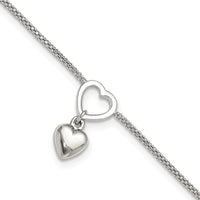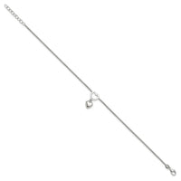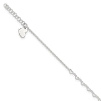 Sterling Silver Polished Puffed Heart 9 in Plus 1in ext. Anklet
