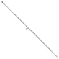 Sterling Silver Rhodium-plated CZ 9in Plus 1in Ext Heart Anklet
