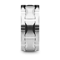 WYNN Alternating Grooves And Horizontal Etched Finish Black Titanium Men's Wedding Band With Alternating Grooved Beveled Polished Edges - 8mm