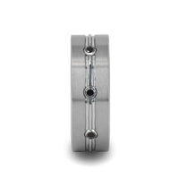COURAGEOUS Brushed Center Titanium Men's Wedding Band With Double Grooved Polished Edges And Black Diamond Settings - 8mm