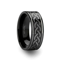 KILMORE Black Tungsten Carbide Ring with Celtic Pattern - 8mm