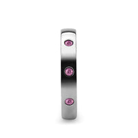 DIANA Domed White Tungsten Wedding Band with 3 Pink Sapphires - 4 mm