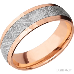 14K Rose Gold with Polish , Polish Finish and Meteorite Inlay and 14K White Gold - 7MM