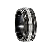 Edward Mirell Titanium Brushed/Polished/Grooved Black Ti 8mm Ring