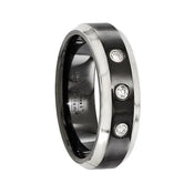 Edward Mirell Black Ti with Grey Titanium Edge .03 carat Diamond with Sterling Silver Bezel 7mm Band