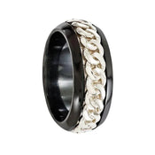 LULUS Black Titanium Ring & Sterling Silver Chain Inlay by Edward Mirell - 9 mm