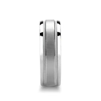 ZENO Novell Satin Finished Center Silver Ring with Dual Milgrains - 6mm - 8mm