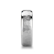Hammered Finish Center 18K White Gold Wedding Ring with Beveled Edges by Novell - 4mm - 10mm