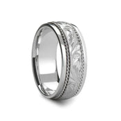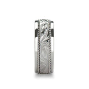 RHODE Novell Hand Engraved Center Silver Wedding Band - 8mm