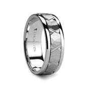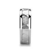 XENON Novell Hammered Finish Center Silver Wedding Band with Bevels - 6mm - 8mm