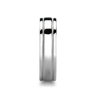 ZOPYROS Novell Beveled Brush Finished Silver Ring with Polished Grooves - 6mm - 8mm