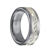 REGINALD Flat Tungsten Carbide Wedding Band with Satin Finished Silver Inlay and Channel Set Diamonds by Triton Rings - 8 mm