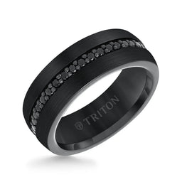 CALVIN Flat Tungsten Wedding Band with Black Diamonds in Silver Inlay by Triton Rings - 8mm