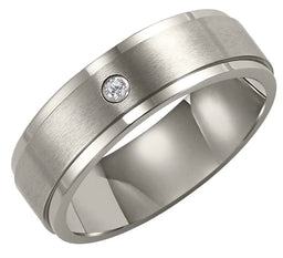 WILLARD Raised Brush Finished Center Titanium Ring with Polish Finished Step Edges and Diamond Setting by Triton Rings - 7 mm