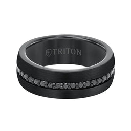 AIKEN Tungsten Ring with Black Center and .17 ct Square Diamond Setting by Triton Rings - 8mm