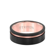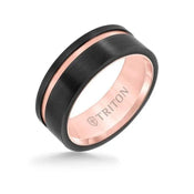 ARIA  Black and Rose Tungsten Flat Satin Finish Ring with Single Polished Offset Groove by Triton Rings 8mm