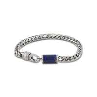 Stainless Steel Bracelet With Lapis Inlay - 9 Inch