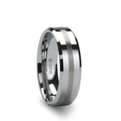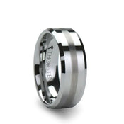 GATEWAY White Tungsten Two-Tone Wire Brushed Center Men’s Wedding Band with Polished Edges by Triton Rings - 8mm