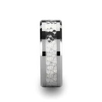 KAEDE Flat Multi Textured Black and White Tungsten Wedding Band by Triton Rings - 8mm