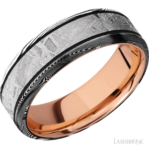 14K Rose Gold with Polish Finish and Meteorite Inlay and 14K White Gold - 7MM