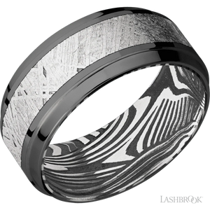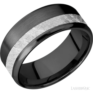 Zirconium with Satin , Polish Finish and Meteorite Inlay and Titanium - 8MM