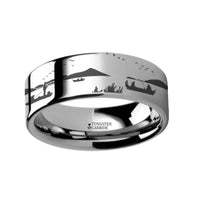 Animal Landscape Scene Fox Hunt Hunting Engraved Flat Tungsten Ring - 4mm - 12mm