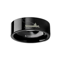 Mahi Fish Jumping Sea Print Pattern Engraved Flat Black Tungsten Ring - 4mm - 12mm