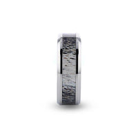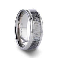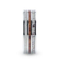 Flat Polished 14k White Gold Wedding Ring with Ombre Deer Antler Inlay - 8 mm