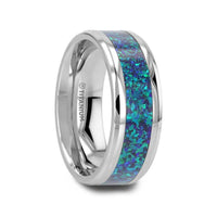 QUASAR Tungsten Wedding Band with Blue Green Opal Inlay - 4mm - 10mm