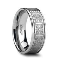 CATHOLY Classic Flat Tungsten Carbide Ring with Engraved Cross Pattern