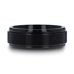 PHANTOM Black Titanium Brushed Center Spinner Men 's Wedding Ring With Spinning Polished Base - 8mm