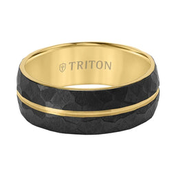 BEAMAN 8MM Black Titanium and Yellow PVD-Plated Ring with Brushed Finish