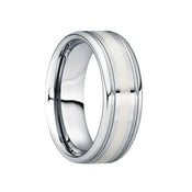 CAIUS Tungsten Wedding Ring with 18K White Gold Inlay & Dual Groove Edges - 8mm