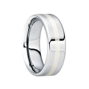 CASSIAN Tungsten Carbide Wedding Ring with 18K White Gold Inlay & Polished Finish - 8mm