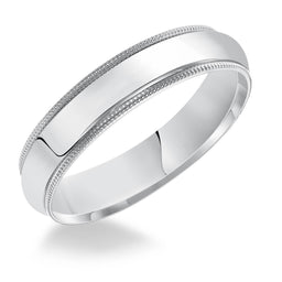 14k White Gold Polished Finish Raised Center Ring with Milgrain Edges - 4mm - 6mm
