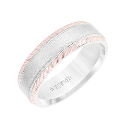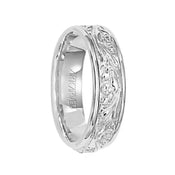 SUCCESS 14k White Gold Wedding Band Intricate Scroll Center Rolled Edges by Artcarved - 6 mm