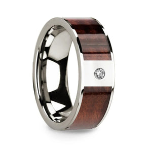 Redwood Inlaid Polished 14k White Gold Men’s Wedding Ring with Diamond Center - 8mm