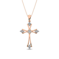 10K Rose Gold Diamond 1/10 Ct.Tw. Heart and Cross Pendant
