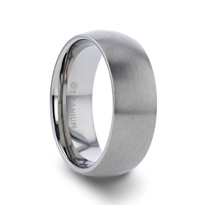 ERIS Men’s Titanium Brushed Domed Wedding Band, Comfort Fit — 6mm or 8mm