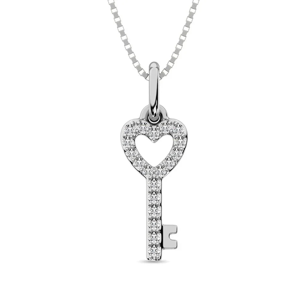 Colgante de corazón doble de diamantes de 1/10 quilates en oro blanco de 10 quilates