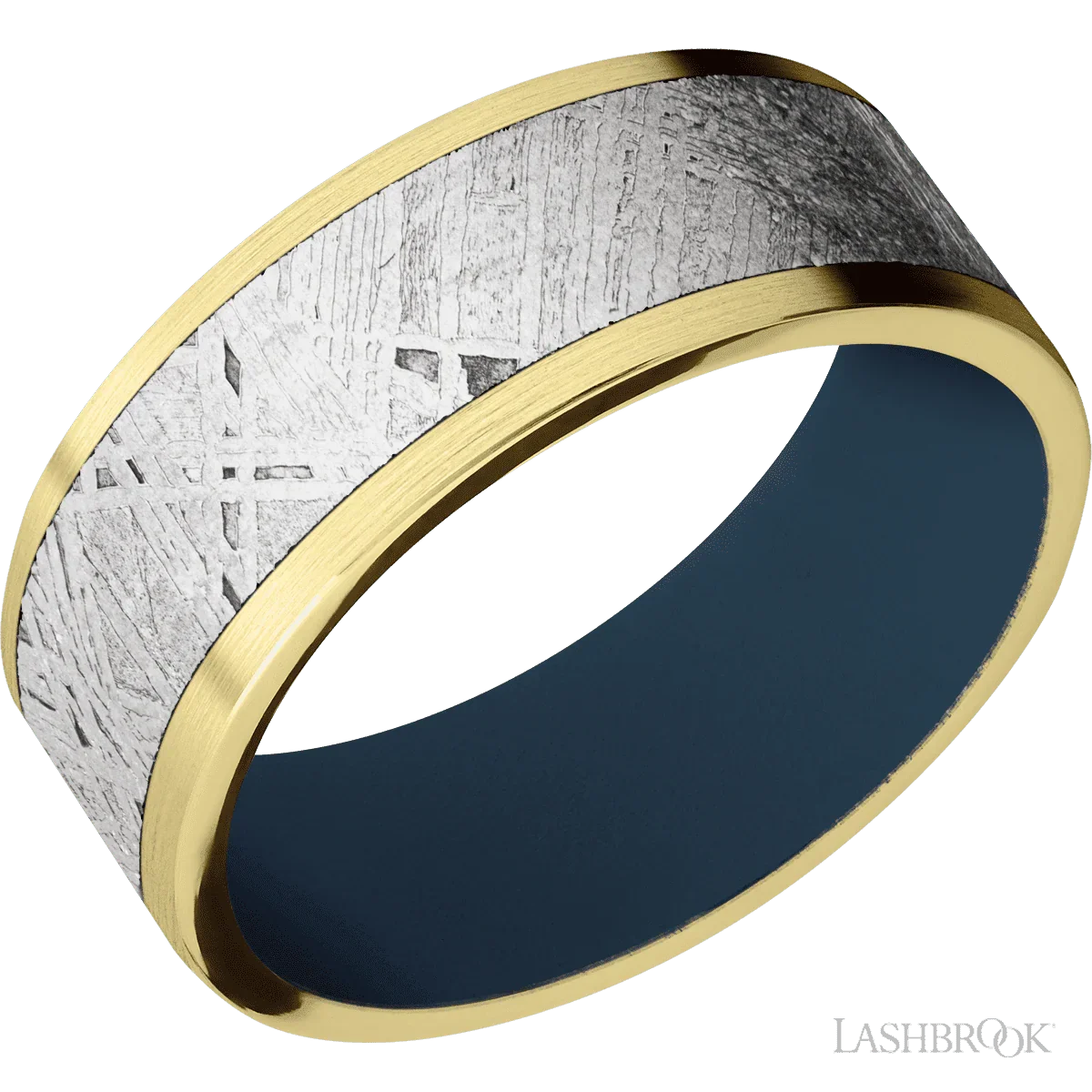 Oro amarillo de 10 quilates con acabado satinado e incrustación de meteorito y azul marino - 8 mm